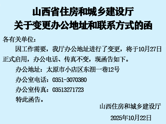 【行業(yè)動(dòng)態(tài)】山西省住房和城鄉(xiāng)建設(shè)廳關(guān)于變更辦公地址和聯(lián)系方式的函