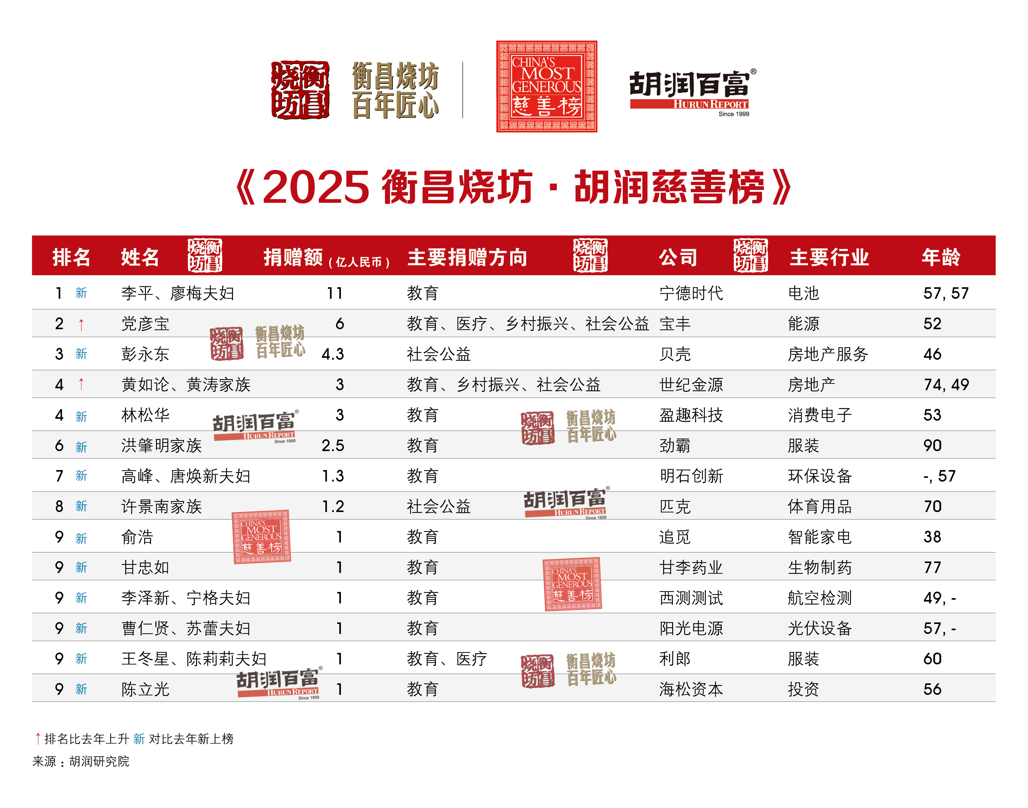 胡潤(rùn)研究院發(fā)布《2025衡昌燒坊·胡潤(rùn)慈善榜》