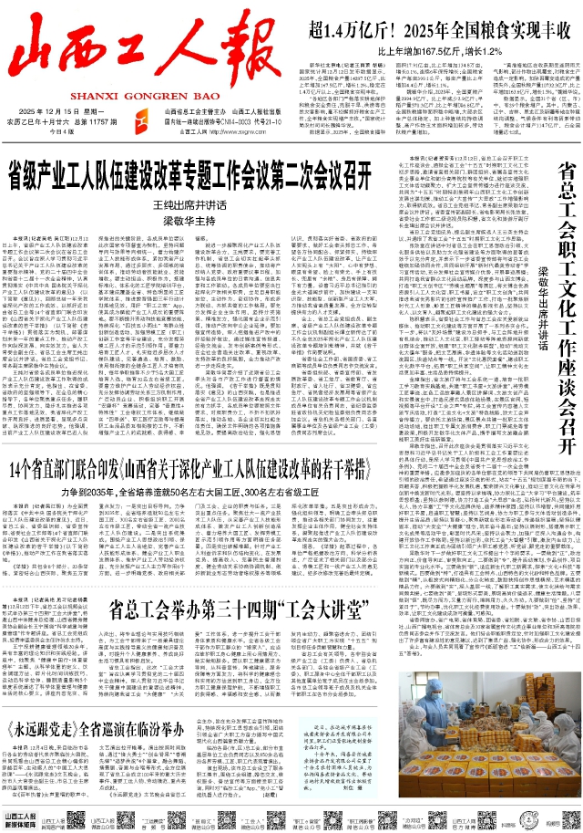 《舉措》共包含8個部分23條舉措,緊貼山西實際,聚焦產業(yè)工人思想政治引領、保障主人翁地位、完善技能形成體系、健全職業(yè)發(fā)展體系、維護勞動經濟權益、充分發(fā)揮主力軍作用等6個方面,進一步明確黨委和政府相關部門,以及工會、企業(yè)的職責任務。近年來,省總工會持續(xù)加大工匠學院、技能大師工作室、勞模工匠(職工)創(chuàng)新工作室、網絡學習平臺等建設力度,建設“1+N+N”工匠學院體系,為工匠成才鋪路?!杜e措》對此明確了相應改革舉措。據了解,省總工會近日印發(fā)通知,決定重點支持“王永晶勞模創(chuàng)新工作室”等30個勞模創(chuàng)新工作室、“郭永亮職工創(chuàng)新工作室”等100個職工創(chuàng)新工作室和“苗振潔傳統(tǒng)手工藝大師創(chuàng)新工作室”等14個傳統(tǒng)手工藝大師創(chuàng)新工作室,對重點支持的省級創(chuàng)新工作室給予8萬元資金支持。決定2025年度在全省重點支持新時代晉陽工匠學院(山西應用科技學院)、臨汾市家政工匠學院等38家工匠學院,并按相關規(guī)定給予專項資金補助。