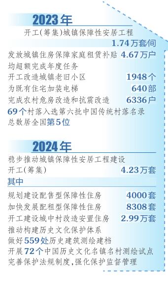 回看2023年,全省穩(wěn)步實(shí)施城市更新和鄉(xiāng)村建設(shè)“兩大行動(dòng)”,城鄉(xiāng)面貌明顯改善。開工改造城鎮(zhèn)老舊小區(qū)1948個(gè),為既有住宅加裝電梯640部,人民群眾居住水平明顯提升。高質(zhì)量完成“推進(jìn)以縣城為重要載體的城鎮(zhèn)化建設(shè)”行動(dòng)方案,明確8大行動(dòng)35項(xiàng)具體任務(wù),確定11個(gè)試點(diǎn)縣先行先試。完成農(nóng)村危房改造和抗震改造6336戶,農(nóng)房風(fēng)貌設(shè)計(jì)水平和建房質(zhì)量明顯提高。69個(gè)村落入選第六批中國(guó)傳統(tǒng)村落名錄,總數(shù)居全國(guó)第5位。