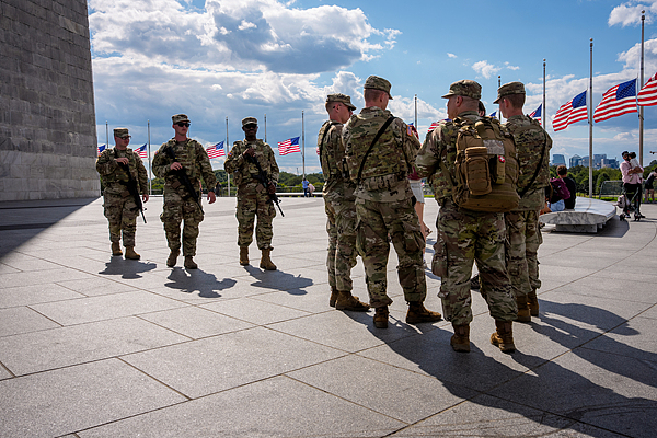 8月27日,美國華盛頓,武裝國民警衛(wèi)隊成員在華盛頓紀念碑底部巡邏。 視覺中國
