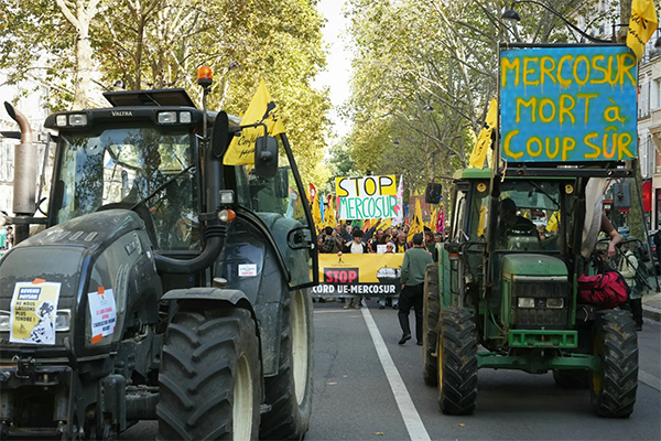 協(xié)議簽署儀式將在當(dāng)?shù)貢r(shí)間12月20日舉行,但在最后關(guān)頭,這項(xiàng)協(xié)議依然面臨歐盟內(nèi)部的阻力。報(bào)道稱,法國農(nóng)民10月以來多次舉行抗議示威,反對歐盟-南方共同市場自貿(mào)協(xié)定。法國農(nóng)民擔(dān)心,拉美農(nóng)產(chǎn)品通過自貿(mào)協(xié)定進(jìn)入歐洲市場,將沖擊本地農(nóng)業(yè)。