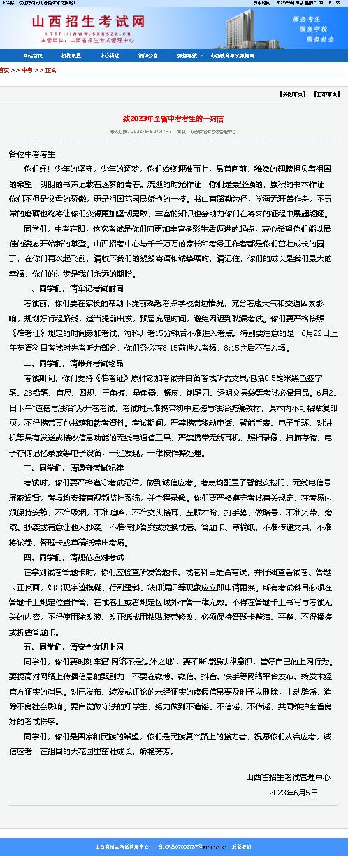 山西省2023年中考時間為6月20日、21日、22日。記者6月19日從山西省招考中心獲悉,今年全省中考報名356516人,比去年減少27708人,全省共設(shè)11個考區(qū)、353個考點(diǎn)、11944個考場。
