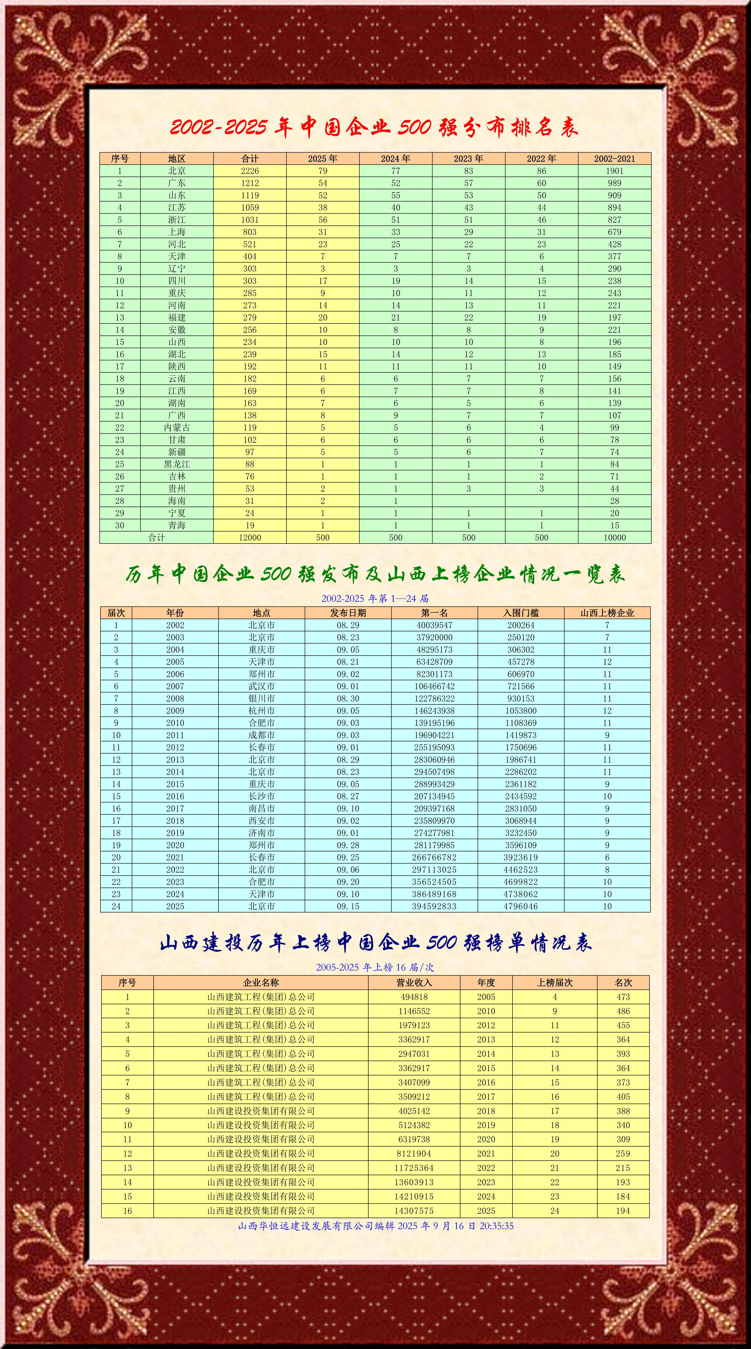 2002-2025中國(guó)企業(yè)500強(qiáng)分布排名表